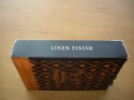 Thick with a good snap. Heavier than bicycles. Durable, but can still take bends and hits. But still with that papery, air cushioned like finish. It does in fact have those air pocket dimples. Anaconda falls are the easiest ever to do with this deck. It says ‘linen’ finish. Probably not the same linen as say a Tally Ho deck. Tally Ho? Whats that…? We don’t know. We haven’t found one of those in the stash yet. Yet. Spreads stay consistent. Fans are great. But the only thing that stands out is the snap. Aside from that. Very slippery. As in if you missed a catch, expect some cards to slide. A lot.