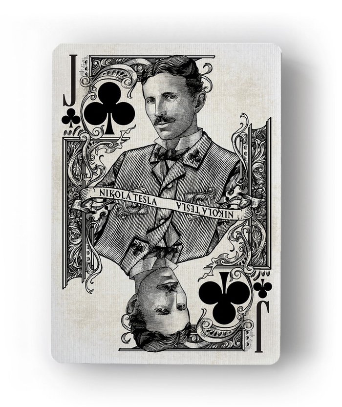 Thoughts: In terms of visual back designs for cardistry, I like the blue band on the standard deck as well as the gold band on the black deck. The exclusive deck doesn’t have this band, but its still clean. The artwork on the royal face cards are all great, and everyone you’d expect is there. Its a party and you’re invited! Each of the Aces is a sector of innovation from, automobiles to electricity and communication to flight. Like the Golden Spike deck, this set is a historical tribute to innovation.